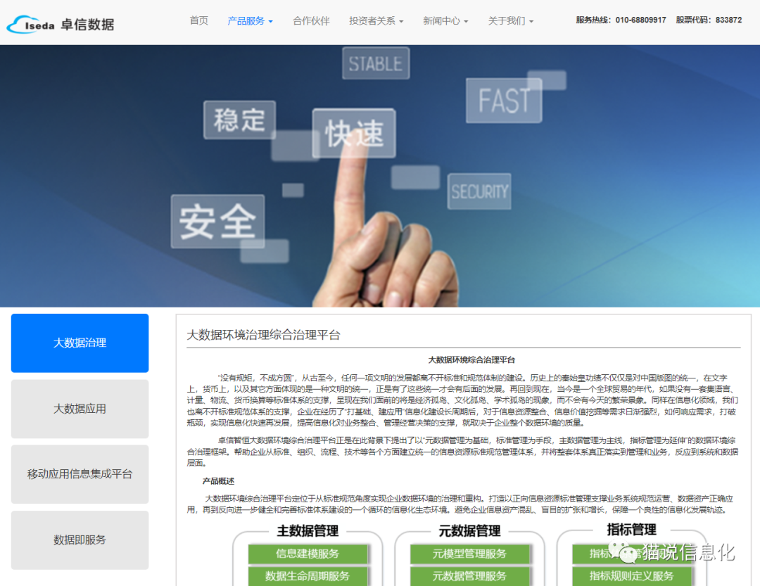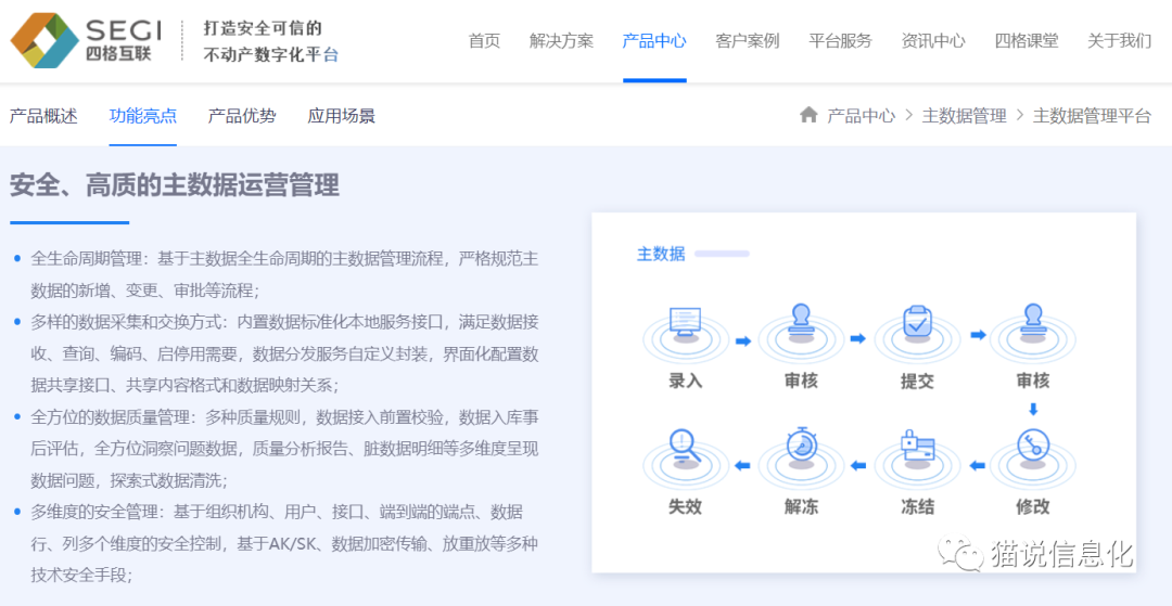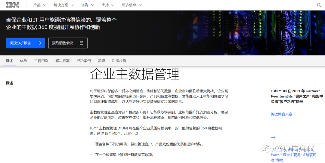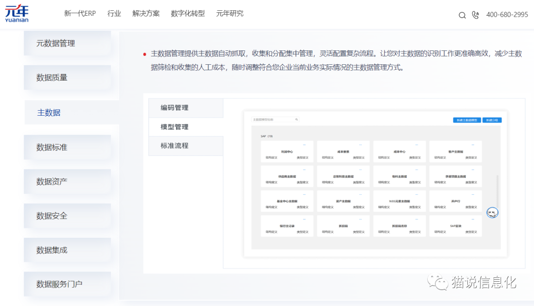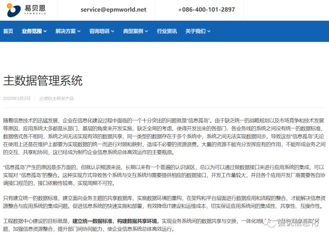 在多系统集成时主数据管理系统(MDM)是很常用的软件,例如异构系统之间,跨组织应用的系统之间。因为很常用,所以开发主数据管理软件产品的厂商也很多,首先是以包括主数据管理系统为主要产品的一些专业的数据管理类软件厂商,而且这些厂商不少都是从主数据管理起步逐渐发展为综合性数据软件厂商的,例如三维天地、美林、亿信华辰等。还有一些专业数据类软件厂商开展过主数据业务,但现在从其官方资料中不能直接找到主数据的内容,可能是涵盖在其大数据平台、数据治理平台等产品中了,这部分厂商本文暂不介绍。其次是包括以ERP软件产品为核心的企业管理软件厂商,例如用友、金蝶、浪潮、SAP等,较多的企业信息化项目是以ERP系统为核心按需集成相关应用系统的,那么为了更好的实现集成,ERP软件厂商就相应开发了主数据管理软件产品。再例如一些有规模的、综合性的企业信息化厂商,因为这些厂商承建的很多项目都有大量的系统集成内容,所以也开发了自己的主数据管理软件,比如汉得、元年、石化盈科、昆仑数智、英诺森、软通动力等。还有若干种情况,总的来说,如果厂商经常要实现系统集成应用,往往就会开发自己的主数据管理软件产品。此处需要说明的是,主数据首先是用于系统集成的,主数据管理是为了实现系统集成时数据和业务的互通互联,保障主数据的唯一性、标准性和共享性的,进而保障业务数据的一致性。所以很多年前在面向服务的体系架构下(SOA),与企业服务总线系统(ESB)一起,很好的解决了系统集成的问题。而主数据作为数据的一种,自然也会被列入数据治理的范畴内,并随着近些年开始被广泛重视的数据治理而被进一步关注到,但实际上主数据以及主数据管理系统是远远早于数据治理热潮之前就被广泛应用的,主数据管理软件的产品也已很成熟,并且也随着技术的发展,在本地部署的产品之外也出现了云版本的产品,为用户提供了更多的选择。