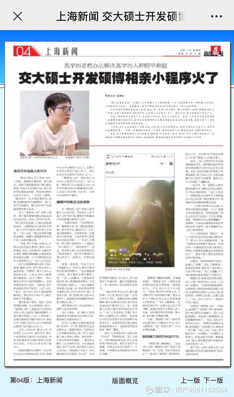 “高学历者想办法解决高学历人群脱单难题”,这款硕博相亲小程序推出后不久,便被上海《新闻晨报》报道。