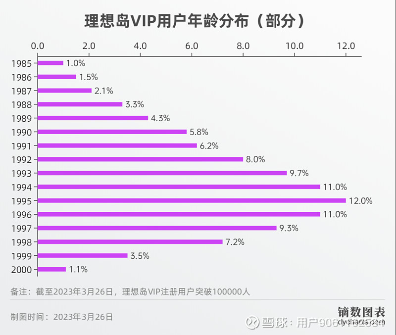 根据《2023理想岛VIP用户报告》,理想岛VIP用户中90后最多,占83.7%。90后用户中又以1995年出生的用户最多。