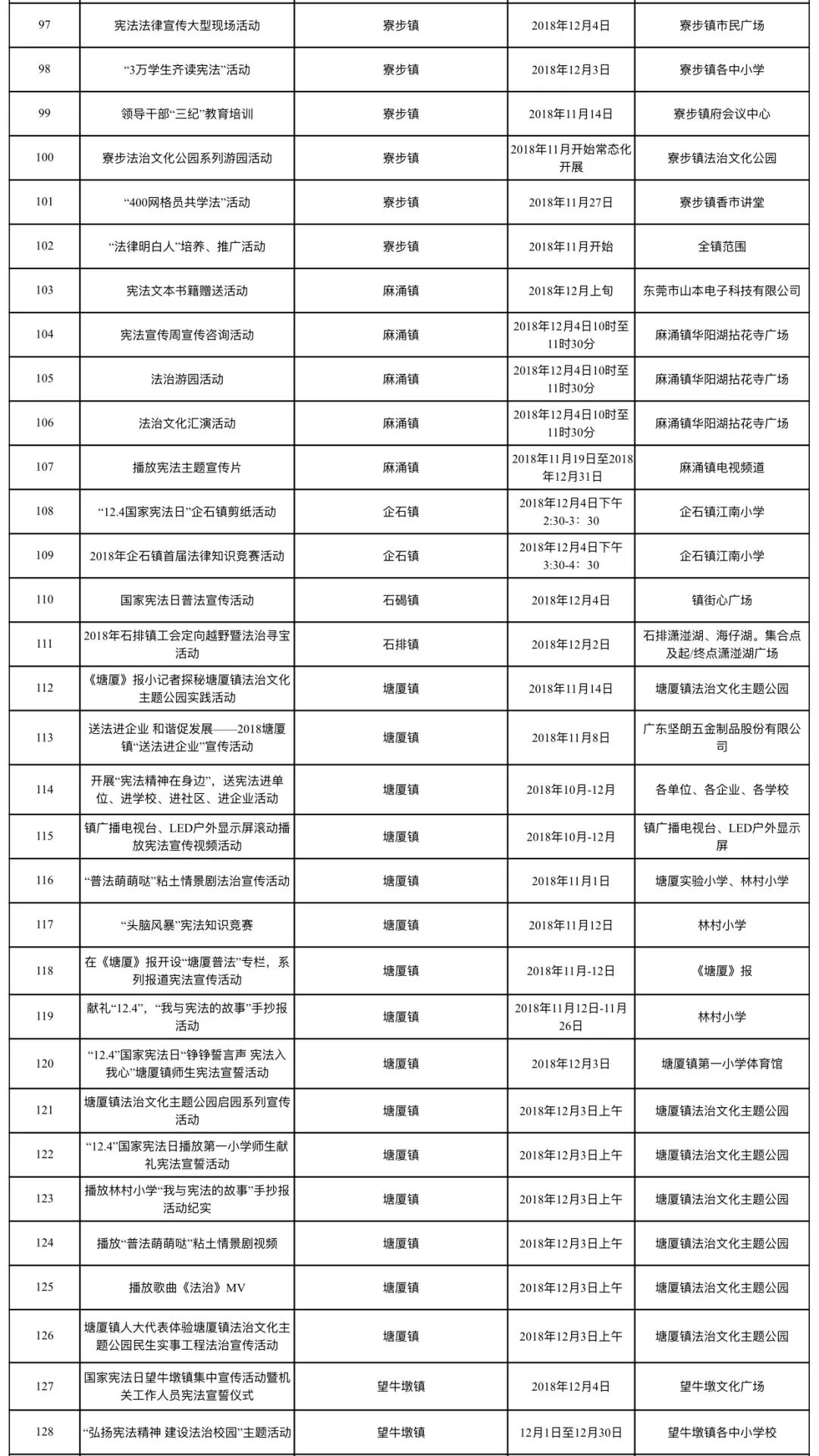 各镇街和市直部门将举办200多项形式多样精彩纷呈的法治宣传活动(详见文末图表)。其中,12月1日至7日,阳光台App将通过视频直播部分系列活动,并利用线上线下相结合的形式开展学习教育活动。