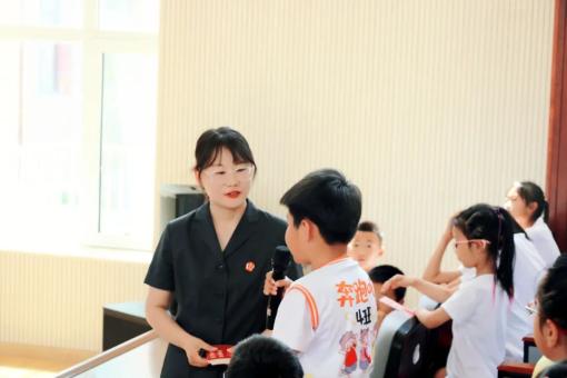 在赤峰市红山区第二十一小学,宣讲团成员孟宪宁以“‘法’是什么”为主题为二年级的孩子们送去一场轻松、活泼的普法宣传课。以“法”字的演变为切入点,通过趣味问答等方式讲解了法的公平、正义等基本属性;针对二年级的学生,精心准备了交通安全规则、校园规则、隐私保护、拒绝校园欺凌等内容,让孩子们在保护好自己的同时,也能做到关心、爱护他人。此外,还有一位身穿法袍的小兔子“法官”展示了法袍的构成与意义,并送给回答问题的孩子们一张张励志的明信片。