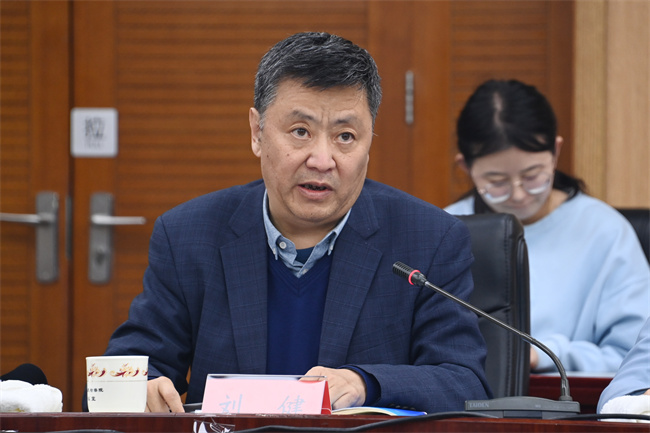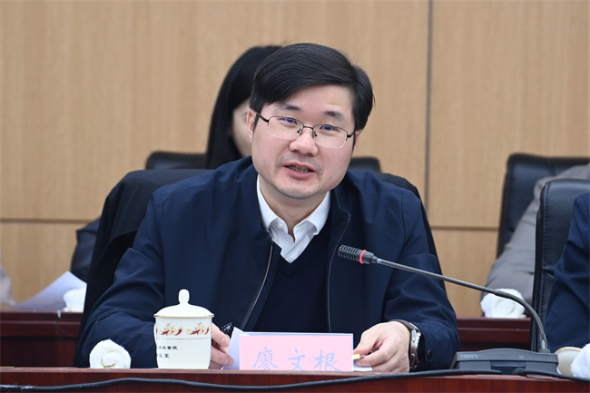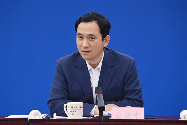 全国人大常委会办公厅新闻局局长金晴中发言。