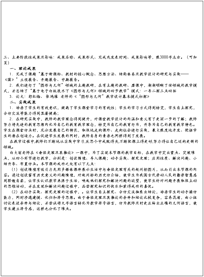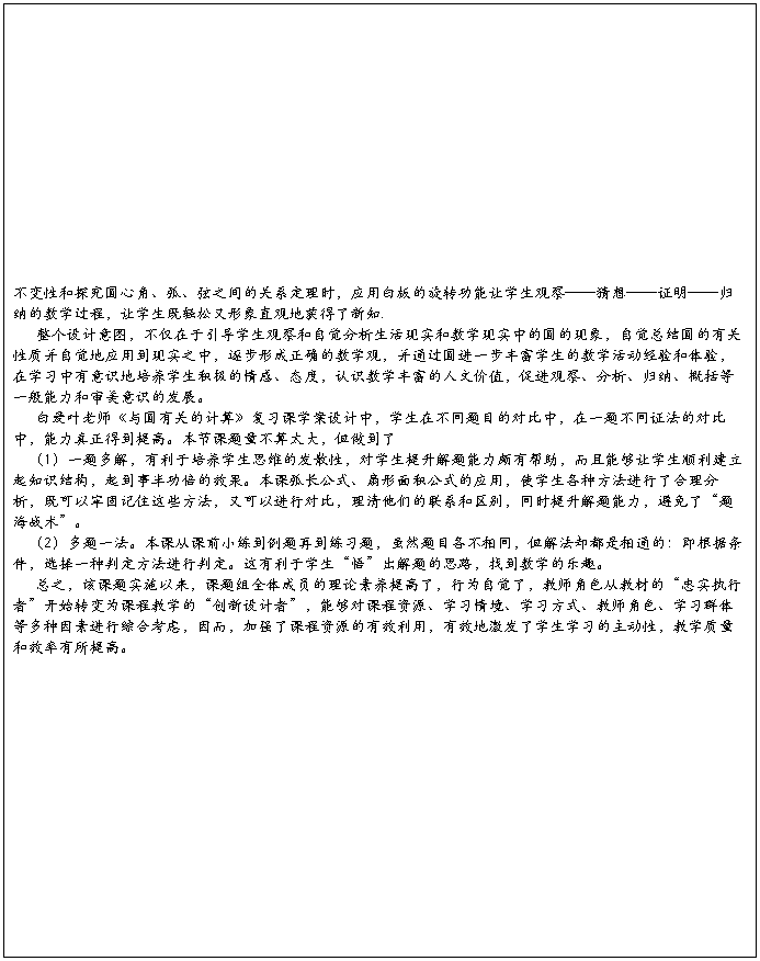 课 题名 称基于新课标、教材的核心概念、思想方法、结构体系及教学设计的研究与实践——《圆》