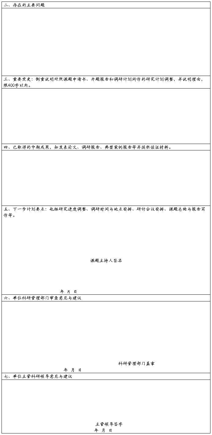 1、功能:中期报告是科研课题的执行人在科研过程中向科研主管部门汇报课题研究工作进度的情况及阶段性成果的书面材料。主要功能有: ① 课题执行人总结前一段研究工作的成绩和经验;
