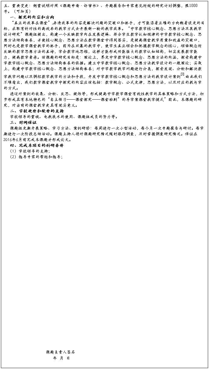 一阶段去完成。如果研究工作计划有变动,应写明变动原因并作出新的安排。