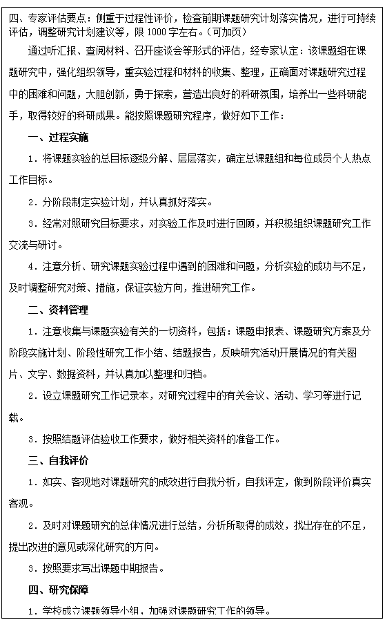 中期检查活动主要是分析已取得的研究成果,研讨课题研究的可持续性,重点是反思、归纳、深化、细化。 中期检查活动建议由市级基础教研室课题管理办公室集中组织,或由所在单位教科研管理部门负责组织实施,并尽可能向社会开放。