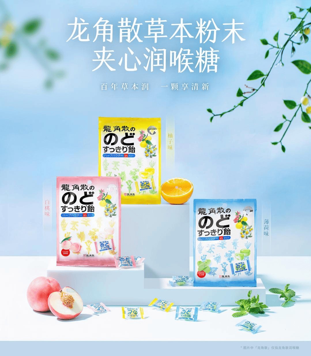 本次剧中热推的龙角散草本粉末夹心润喉糖系列,主打 “一糖双味,清润加倍”,外层硬糖部分添加多种天然草本植物萃取物,内层糖心部分则是对咽喉有益的龙角散草本微粉末,随时随地滋润咽喉。独立包装便携易分享,随时陪伴看剧时光。