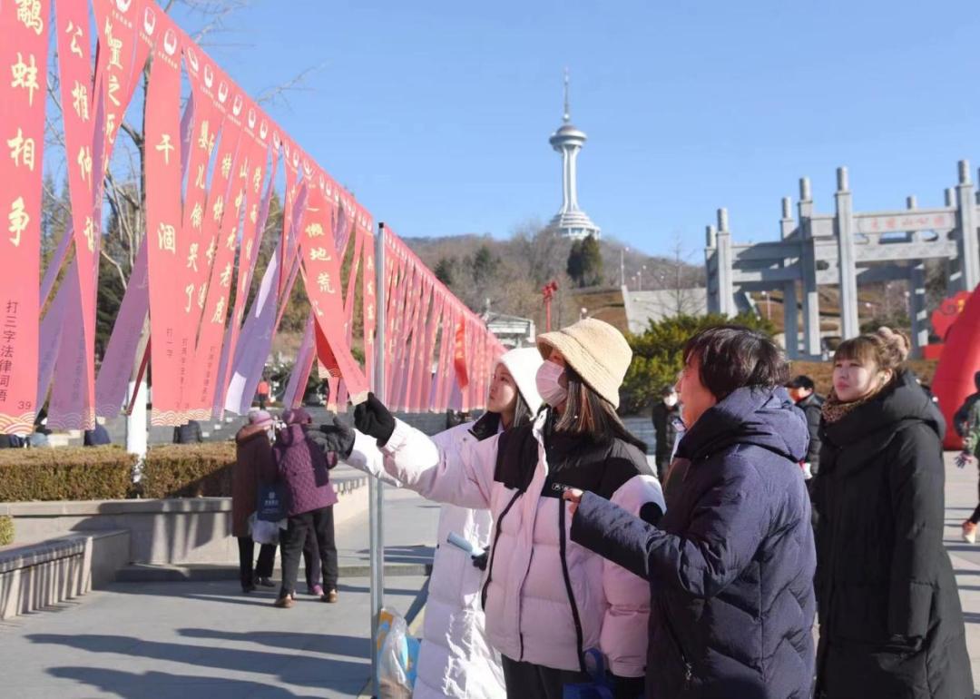 12月1日上午,元宝山公园广场上,飘舞着300多条红丝带做成的法治谜语,吸引着当地群众的驻足、观看、竞猜。人们有的交流探讨,有的拿出手机寻找答案,有的信心十足前去兑奖。