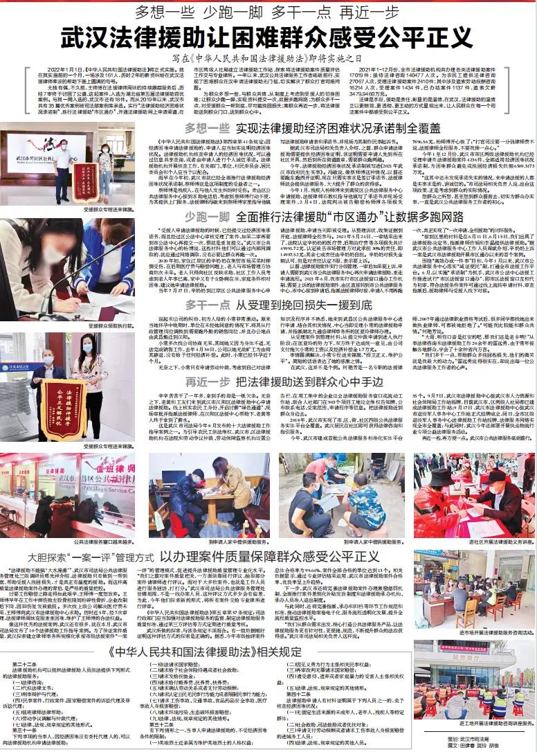 法律是手段,援助是责任,彰显的是温情,在武汉,法律援助的温情正以更细致、更透彻、更主动的方式显现出来,让人民群众在每一个司法案件中都感受到公平正义。
