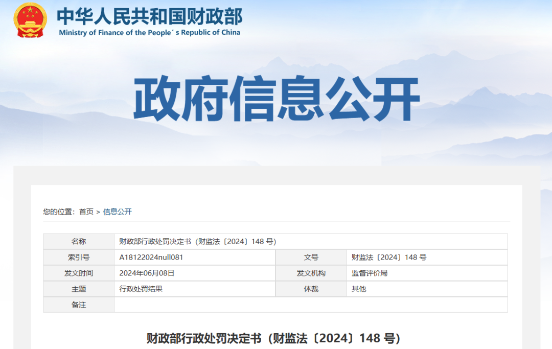 财政部行政处罚决定书(财监法〔2024〕148 号)
