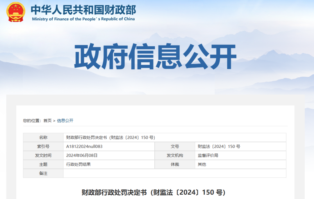 财政部行政处罚决定书(财监法〔2024〕150 号)