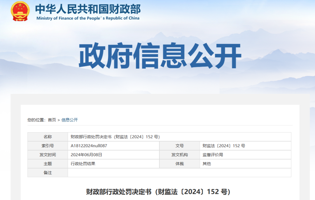 财政部行政处罚决定书(财监法〔2024〕152 号)