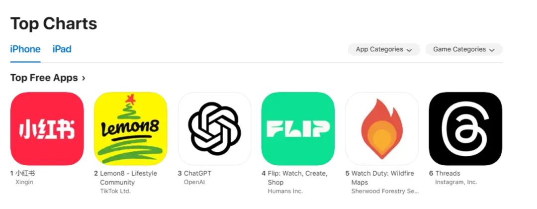 1月14日消息,由于美国用户对TikTok禁令的担忧日益扩大,中国另一款热门社交媒体应用RedNote(小红书国际版)迅速在美国网络中走红,一举登顶苹果应用商店下载榜,紧随其后的是TikTok旗下的照片共享应用Lemon8和OpenAI的ChatGPT。