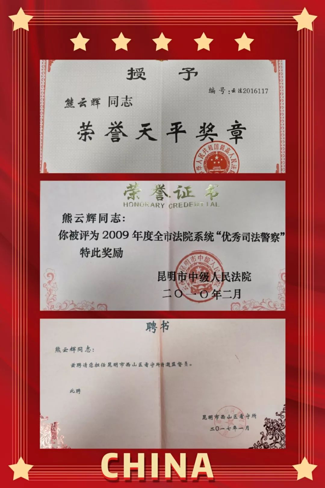 2017年,被西山区看守所聘为“特邀监督员”;