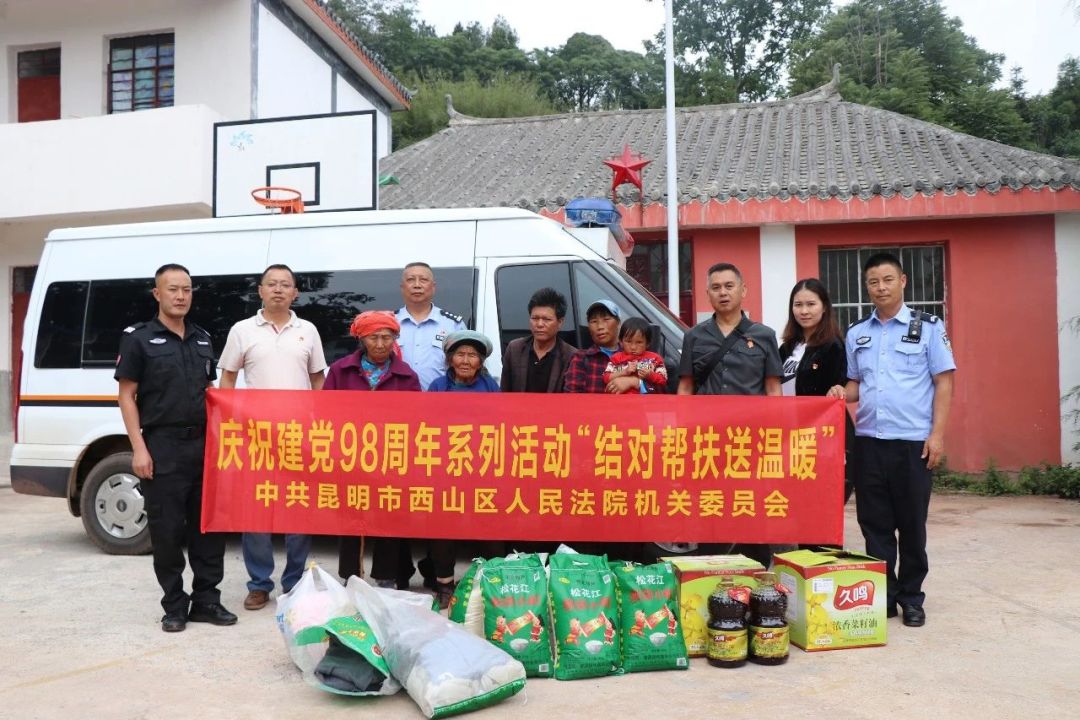 2019年建党98周年之际,按照党建和脱贫攻坚双推进的要求,西山法院深入推进“两联系一共建双推进”工作。 2019年7月3日上午9时,西山法院机关党委委员张茂林同志、帮扶东川区红土地镇结对帮扶责任人熊云辉等一行7名党员同志到东川区红土地镇开展机关党组织联系农村基层、党员干部联系贫困群众结对共建活动暨开展结对帮扶东川区红土地镇迎国检遍访活动。