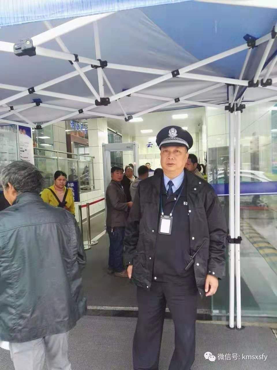 2017年10月23日上午8时许,昆明全市范围内降雨降温,在全省基层法院中收案位居前列的西山区法院内已是人来人往,为了给群众提供优良的诉讼环境,司法警察大队队员们提前一个小时上岗,熊云辉以身作则,带队在安检大厅门口耐心引导诉讼群众,并为到访法院的当事人提供饮用热水和临时雨伞。