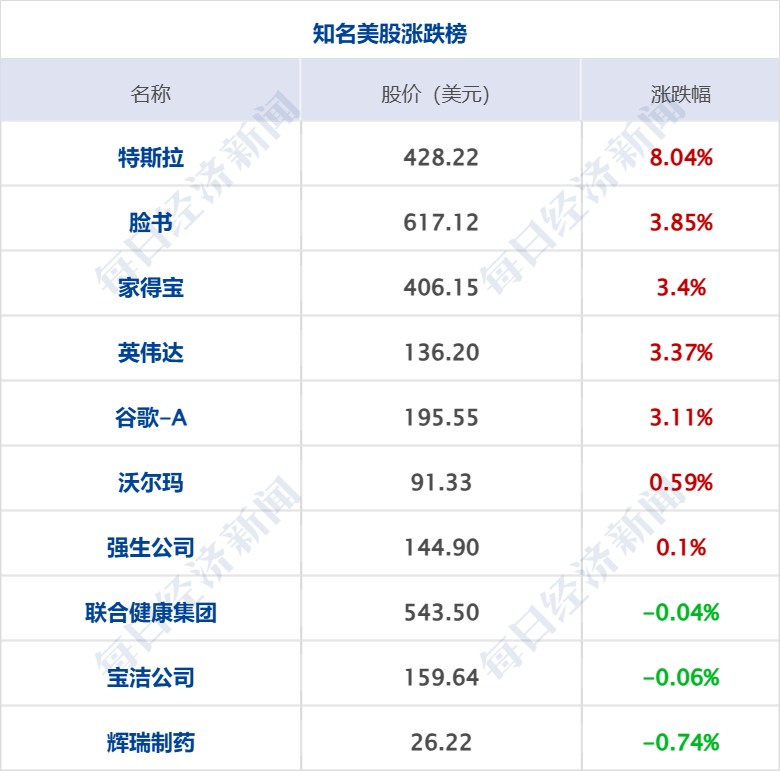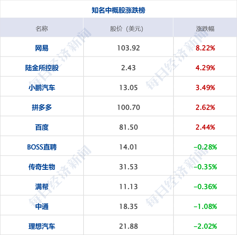 美国通胀放缓推动降息预期,美股三大指数集体收涨,纳指涨2.45%,标普500指数涨1.83%,道指涨703.27点,涨幅1.65%;大型科技股集体上涨,特斯拉涨超8%,Meta、英伟达、谷歌涨超3%,微软奈飞亚马逊涨超2%。纳斯达克中国金龙指数收涨0.97%,中概股多数上涨网易涨超8%,小鹏汽车富途控股涨超3%,百度拼多多涨超2%;理想汽车名创优品跌超2%。