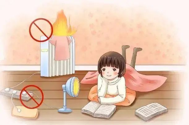 不能在取暖设备上面覆盖东西,不然热量散不出去,就可能着火。也不要用湿手去碰它们,因为水是导电的,这样很容易触电。