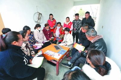 图②:安徽淮北市普法工作者在烈山区古饶镇新店庄农户家中宣传反家暴知识。张锋摄/光明图片