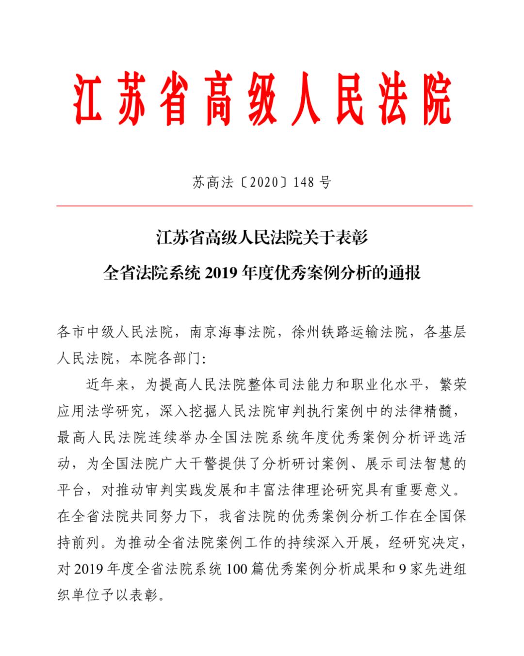 原标题:《盐城法院11篇案例分析、1个集体获省法院表彰》