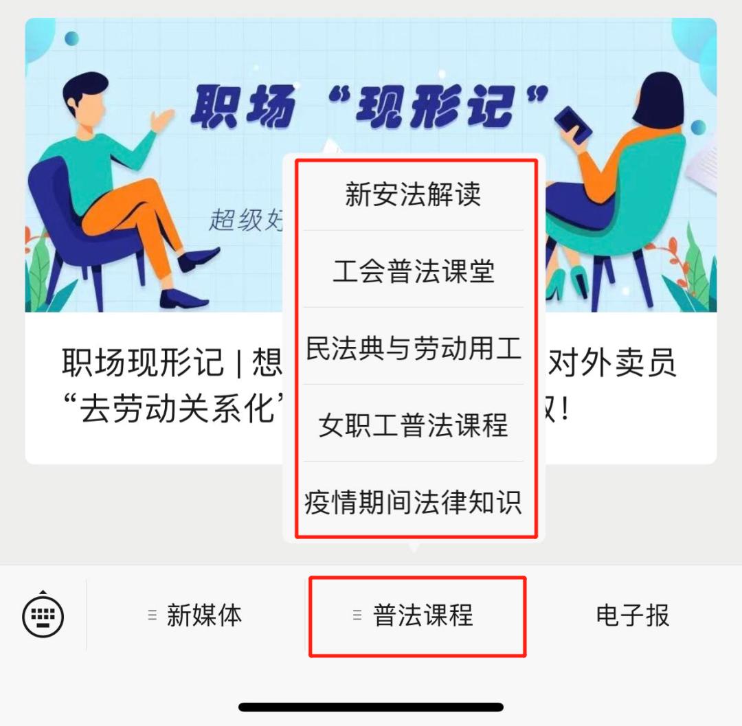 关注“劳动午报”微信公众号,点击菜单栏“普法课程”即可查看相关普法课程~
