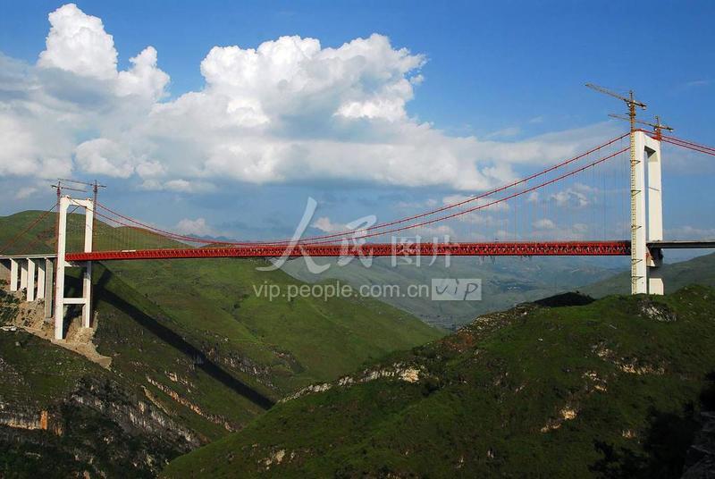 贵州北盘江大桥是世界上第一座上承式推力转体式铁路钢管混凝土拱桥,该桥飞越贵州北盘江大峡谷,距水面高405米,号称亚洲第一高桥,该桥主跨388米,是我国首座采用双向预应力砼加劲板梁设计的特大型桥梁。其跨度、高度、转体重量和转盘大小居世界同类型桥梁之首。该桥2016年12月29日竣工通车。2003年荣获鲁班奖,2004年荣获詹天佑土木工程大奖。