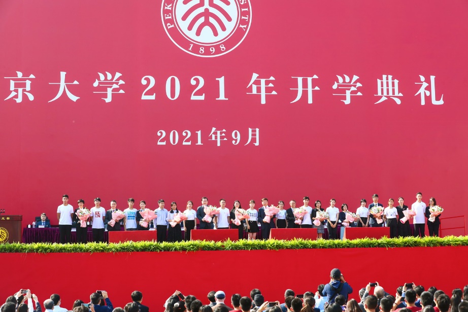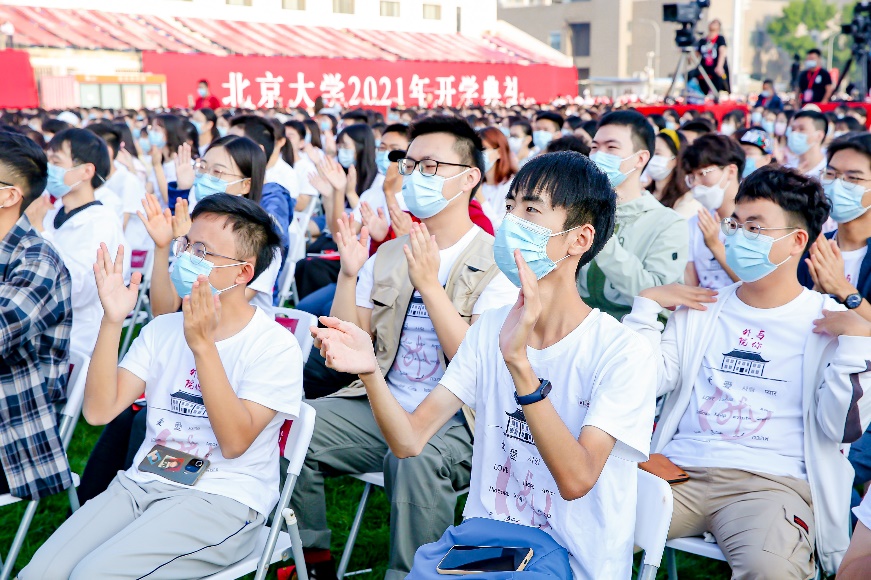 9月10日上午,北京大学2021年开学典礼举行。来自五湖四海的新生汇聚在五四体育场,一张张青春的笑颜明媚了燕园的秋日。