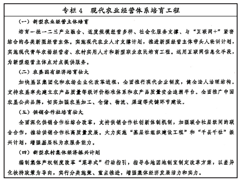 全面建立职业农民制度,培养新一代爱农业、懂技术、善经营的新型职业农民,优化农业从业者结构。实施新型职业农民培育工程,支持新型职业农民通过弹性学制参加中高等农业职业教育。创新培训组织形式,探索田间课堂、网络教室等培训方式,支持农民专业合作社、专业技术协会、龙头企业等主体承担培训。鼓励各地开展职业农民职称评定试点。引导符合条件的新型职业农民参加城镇职工养老、医疗等社会保障制度。