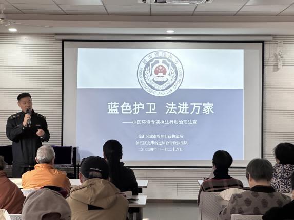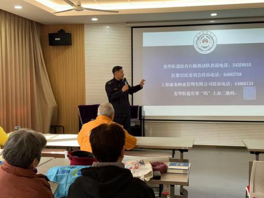 为进一步提高社区居民的法治意识,加强对社区多发易发违法行为的源头管控,打造宜居安居的美好家园,11月26日,徐汇区城市管理行政执法局专项治理专班携手龙华街道综合行政执法队、中国建设银行上海龙华支行走进龙华街道红馨居委社区讲堂,开展“蓝色护卫 法进万家”小区环境专项治理法宣活动,为社区居民送上普法“大餐”。