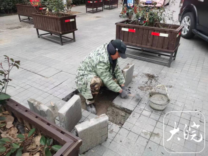 1月30日在现场,大皖新闻记者找到管养单位绍兴豪宇生态园林建设有限公司一名项目负责人潘先生,问及维修情况,他告诉记者,1月初开始的维修是近半年来的第三次维修,因为中间遇到下雨天气,维修工作受到影响,一直到1月底,现场维修工作才结束。潘先生说,这次维修是全面排查后的维修,包含多块破损铺砖的路面修复了十、四五处,另外少数几块、单块的破损铺砖修复了很多处。