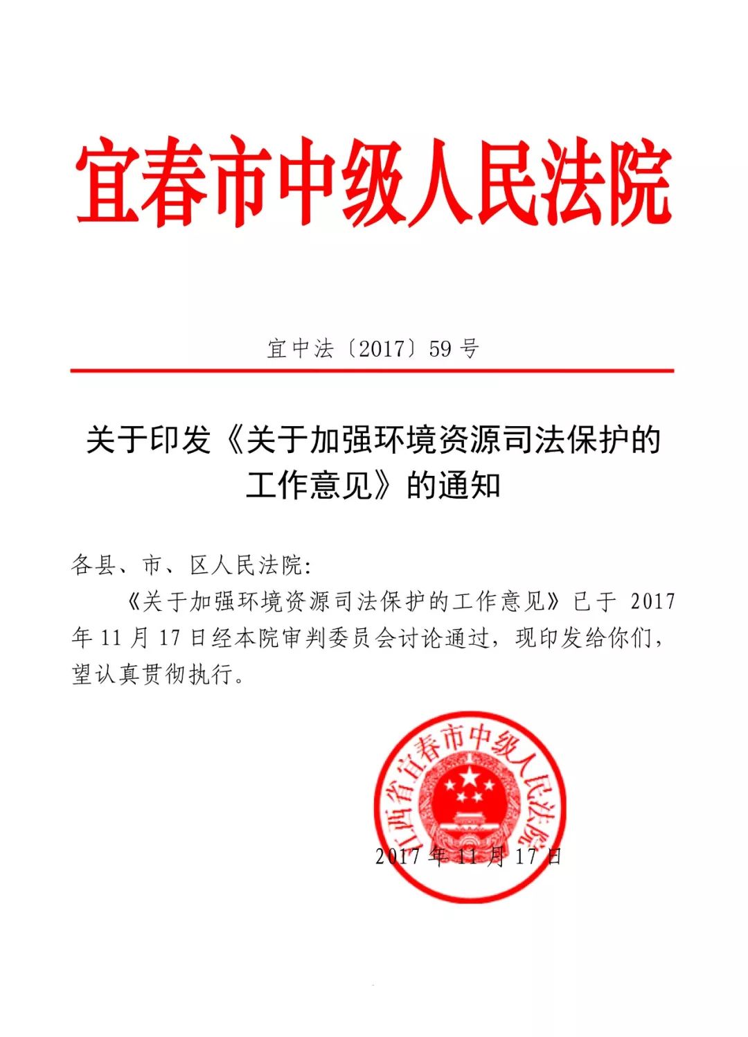 《关于加强环境资源司法保护的工作意见》