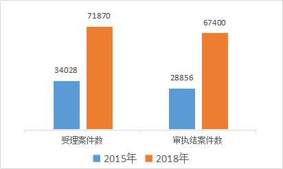 是人民法院的“主业”。近年来,受经济下行压力增大影响, 法院受理的案件数量大幅增长,2018年,全市法院共受理各类案件71870件,审执结67400件,同比2015年分别上升111.2%、133.5%。面对繁重的审判任务,全市法院狠抓执法办案第一要务,努力维护社会公平正义。
