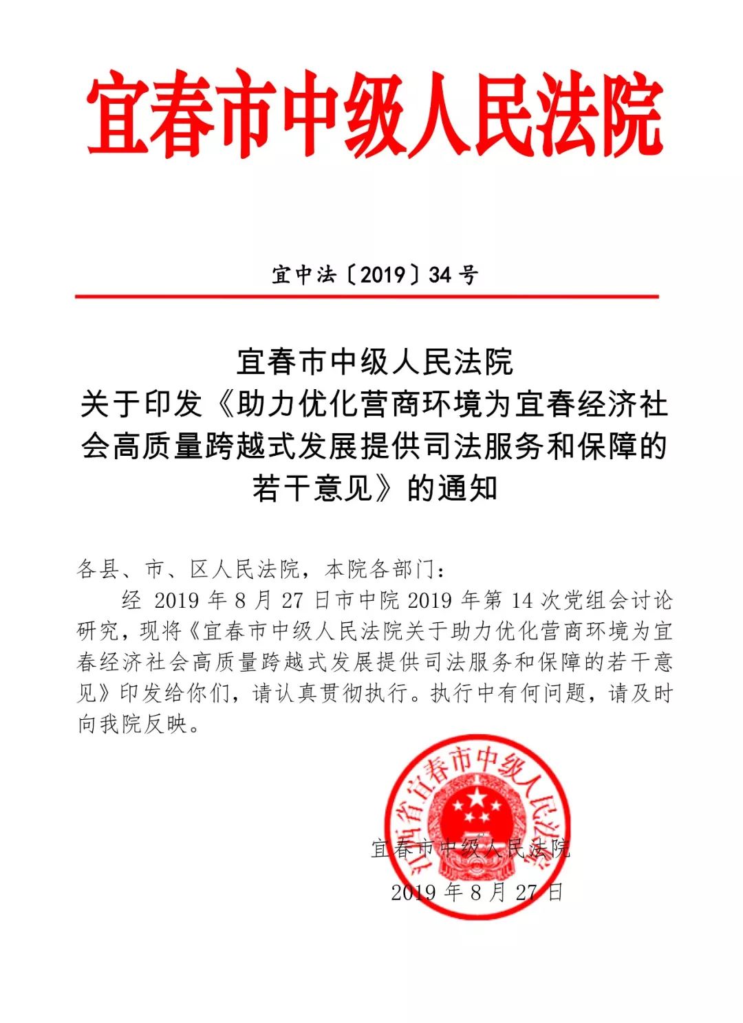 《助力优化营商环境为宜春经济社会高质量跨越式发展提供司法服务和保障的若干意见》