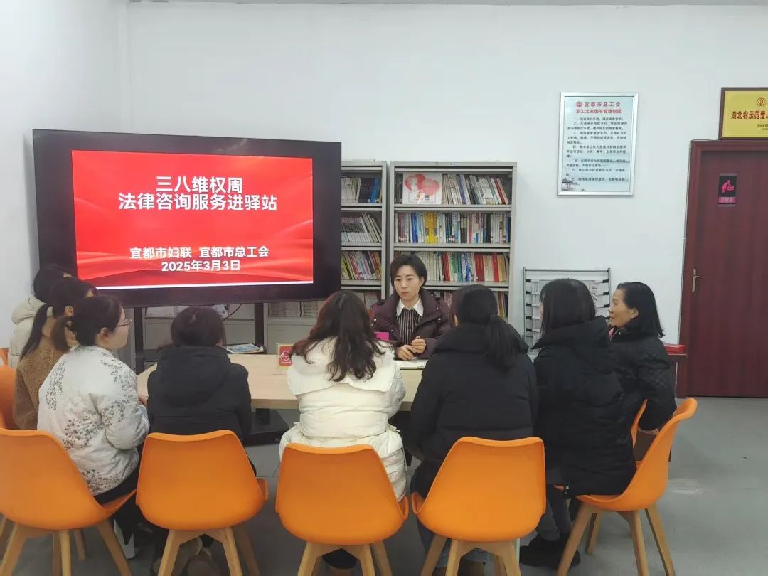 为切实维护妇女合法权益,深化法治宣传教育,3月3日,宜都市妇联特邀法律顾问史进一走进宜都市工人文化宫爱心驿站,为妇女姐妹们提供“三八”维权周公益法律咨询服务。