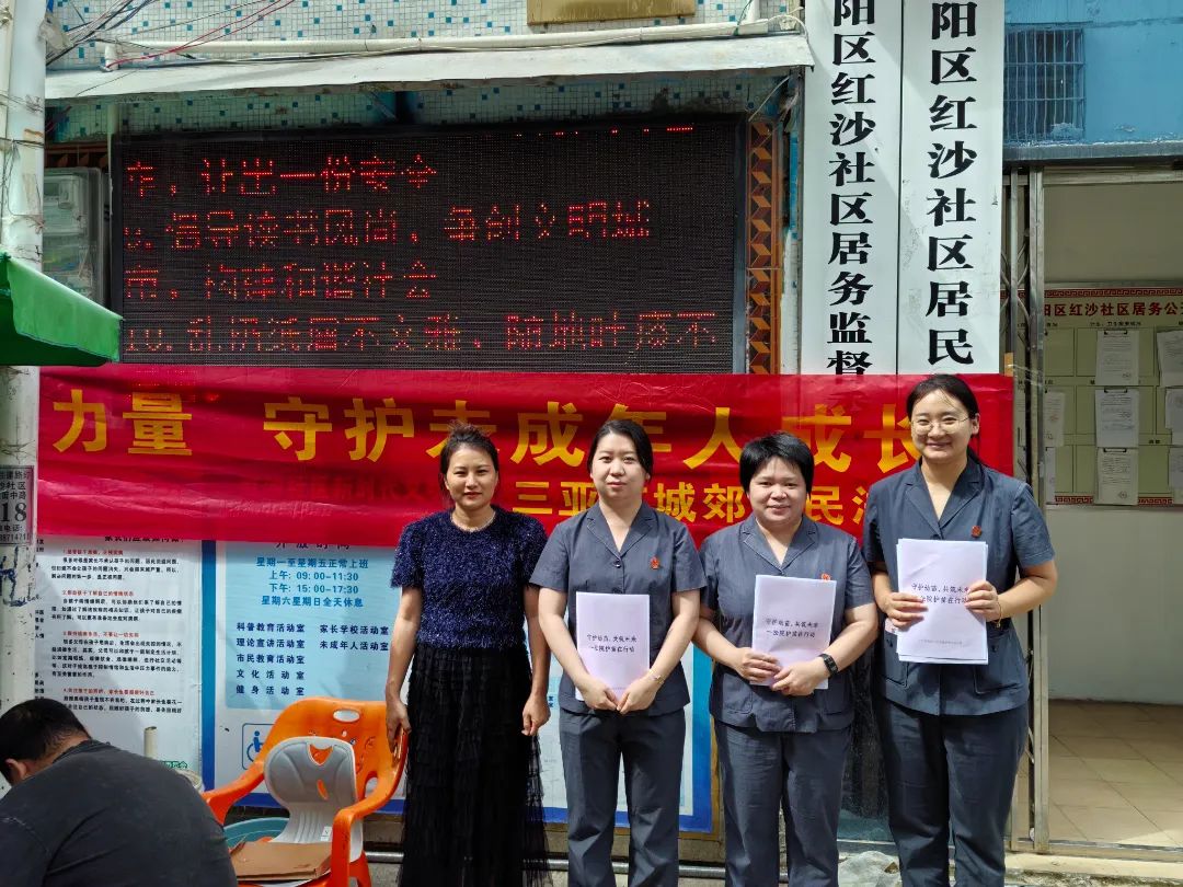 在第115个国际劳动妇女节来临之际,三亚市城郊人民法院、红沙社区居委会联合开展“妇女节”法治宣传暨“护苗”普法活动,加强妇女和未成年人权益的宣传保护,通过法治宣传教育增强群众法律意识,塑造全社会主动关切、积极维护妇女儿童合法权益的氛围。