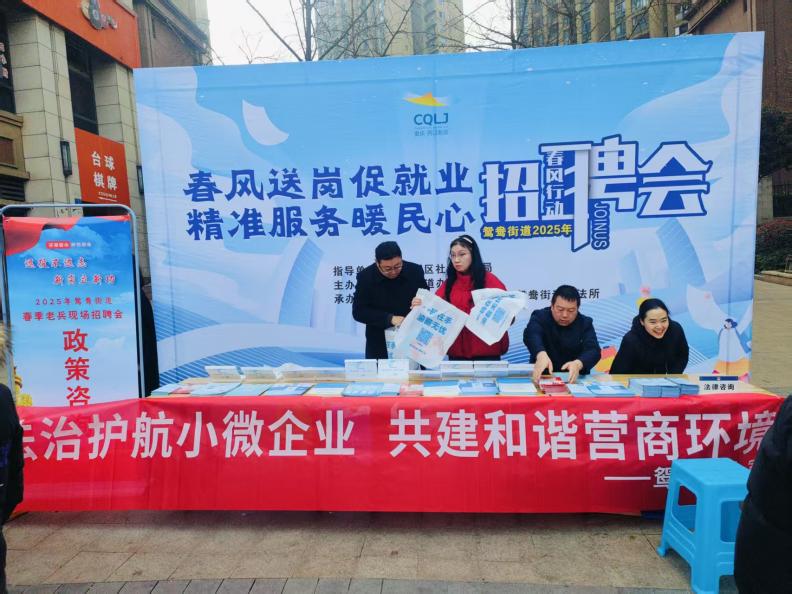 近日,人和街道2025年“春风行动”专场招聘会在协信星光天地广场举办。招聘会上,两江新区司法局联动街道和企业设立法治宣传专区,为求职者解析劳动合同签订、社保缴纳等法律盲区,为企业提供用工风险预警。