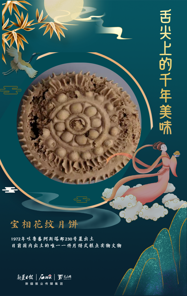 除了举世无双的宝相花纹月饼,吐鲁番阿斯塔那古墓还出土了花式点心、饺子、馄饨等实物,有力诠释了新疆是中国领土不可分割的一部分,新疆各民族文化始终扎根中华文明沃土,是中华文化不可分割的一部分。