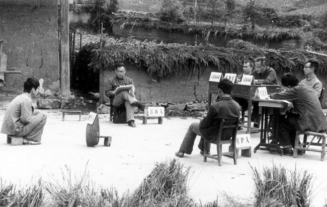 这是一张34年前的老照片。土坯墙围成的农家小院里,两张桌子,几条板凳,便是一个临时法庭。公诉人正在朗声宣读公诉词,审判长和陪审员认真倾听,书记员奋笔疾书,被告人弓着背蹲在小凳子上,无精打采。