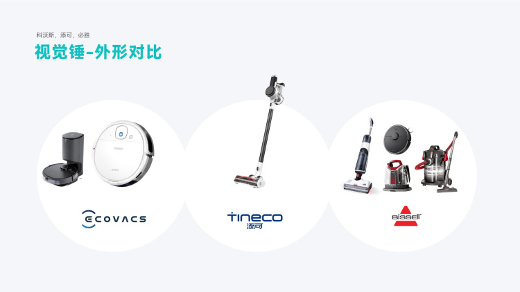 刨去功能&价格等因素,纯以产品视觉资产看:科沃斯主打偏圆润,添可偏瘦长,老牌竞品bissell必胜产品线冗长而复杂,可以说外形上添可下了一步极其大胆的棋。
