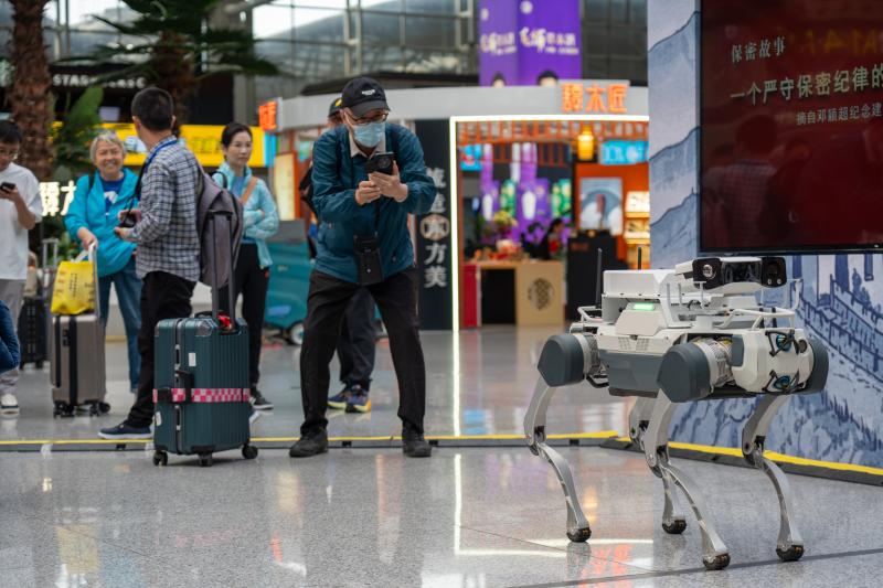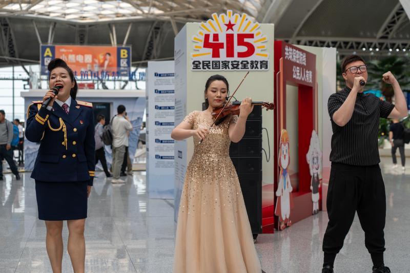 信息时报讯(记者 黄熙灯 通讯员 宋伟伟 胡川豪 秦国威)4月10日上午,广州南高铁车站候车大厅内,小提琴演奏骤然响起,广铁集团职工原创歌曲《无声的承诺》歌声回荡,一场以国家安全为主题的快闪演出拉开帷幕。旅客们驻足聆听时,有人手中翻阅着保密知识手册,有人提着主题文创环保袋,更有科技爱好者在国防教育展区与智能机器人、机器狗互动,形成“视听触”多维体验空间。