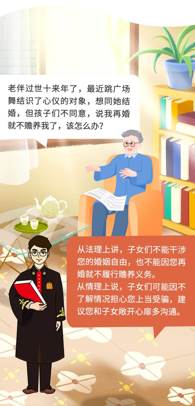 根据近年来的审判实践,老年人再婚伴侣普遍年龄差较大,受子女意见干扰的情形较多,矛盾主要源于赡养压力、财产问题及情感因素。建议老年朋友们再婚前可采用婚前协议、财产公证等形式对财产作出书面约定,并多与子女家人沟通,避免婚后因财产处置等问题引起纠纷。