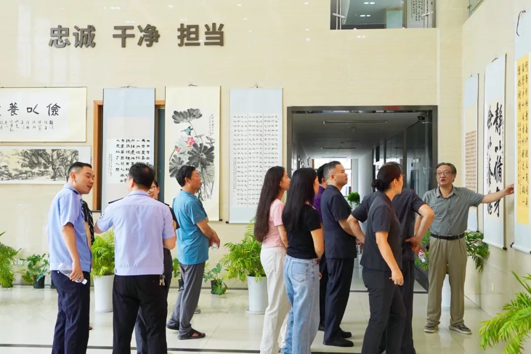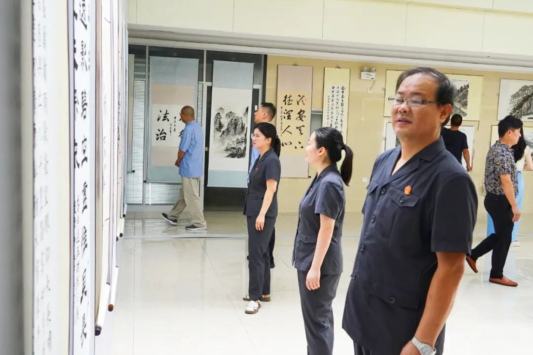 副县长、县公安局党委书记、局长艾康雨,县法院党组书记、院长许磊,县税务局党委书记、局长饶卫国,县委宣传部、县委政法委、县公安局、县检察院、县司法局、县税务局相关领导和书画爱好者们受邀参加开幕式。县文联党组书记、主席金新木致辞并宣读书画大赛评选结果,县法院党组副书记、副院长汪艳主持开幕式。