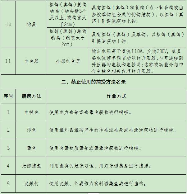 重庆市禁捕水域禁止使用的渔具和捕捞方法名录