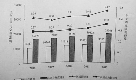 2008~2012年全国国道与高速公路日平均交通量及年平均交通拥挤度