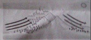 B.气流随地形抬升是图中降水的主要原因