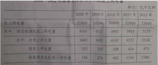 135.关于2008年~2012年间国家电网公司清洁能源的发展,能够从资料中推出的是: