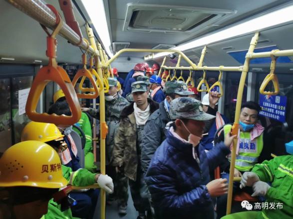 12月7日晚上9点,福建森林消防总队派出500名消防官兵前来支援,第二梯队刚刚经过松柏村。佛山日报记者吕润致摄
