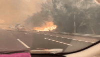 6日,火场风力加大,火线突破隔离带分向西线、南线和东北线三个片区蔓延,总长约7至8公里,扑救困难。