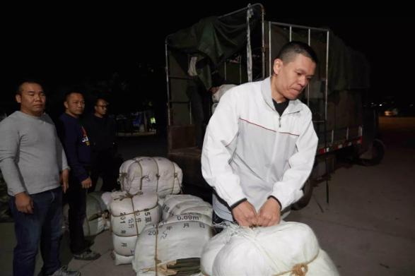 12月7日晚上10时,热心企业将筹集到的物资运送到盈香生态园。