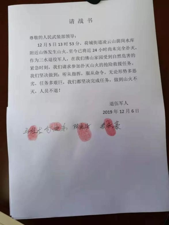 危急时刻,三水退伍老兵马程龙写下请战书,和昔日战友一起按下手印,用行动守护佛山家园